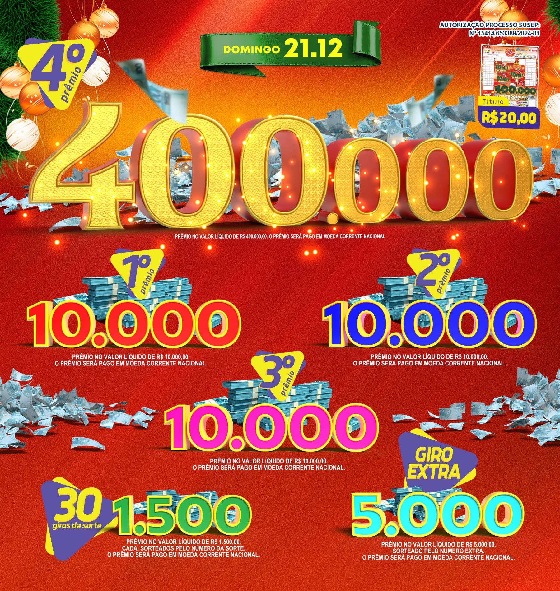 Compre seu título até as 23:59 do sábado sem sair de casa em apenas alguns passos 📲 Além disso, você pode acompanhar ganhadores, novidades e muito mais sobre o Natal Cap! Baixe já 🍀